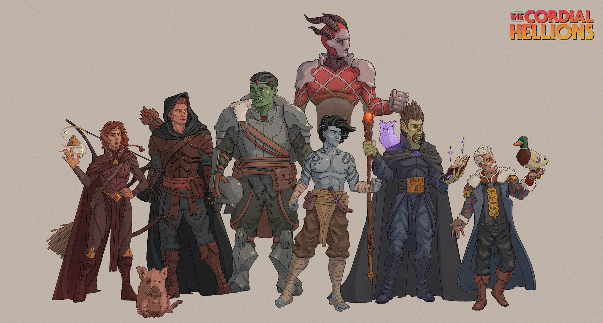 Drawing of full party after completing the campaigns "Tyranny of Dragons" and "
