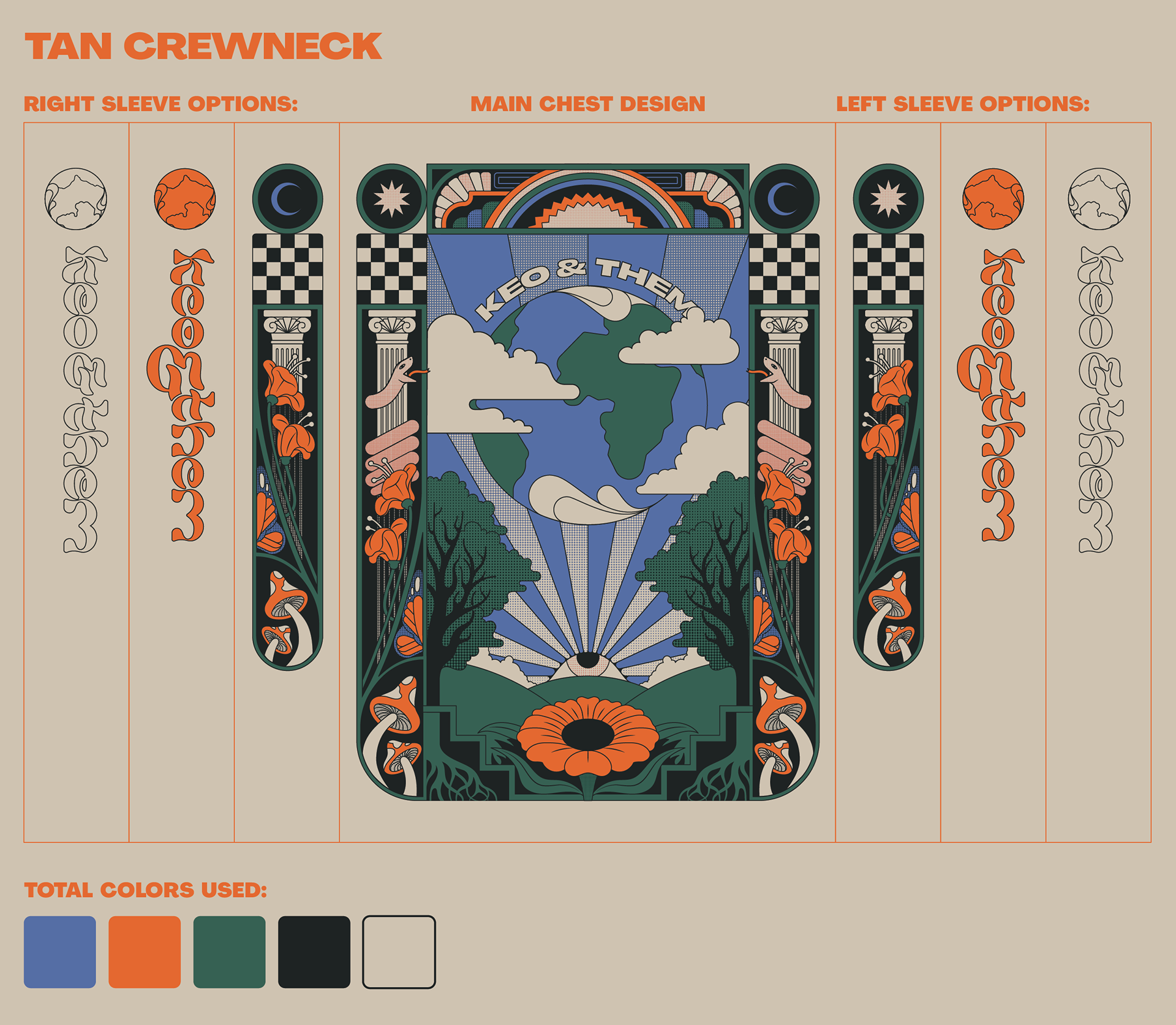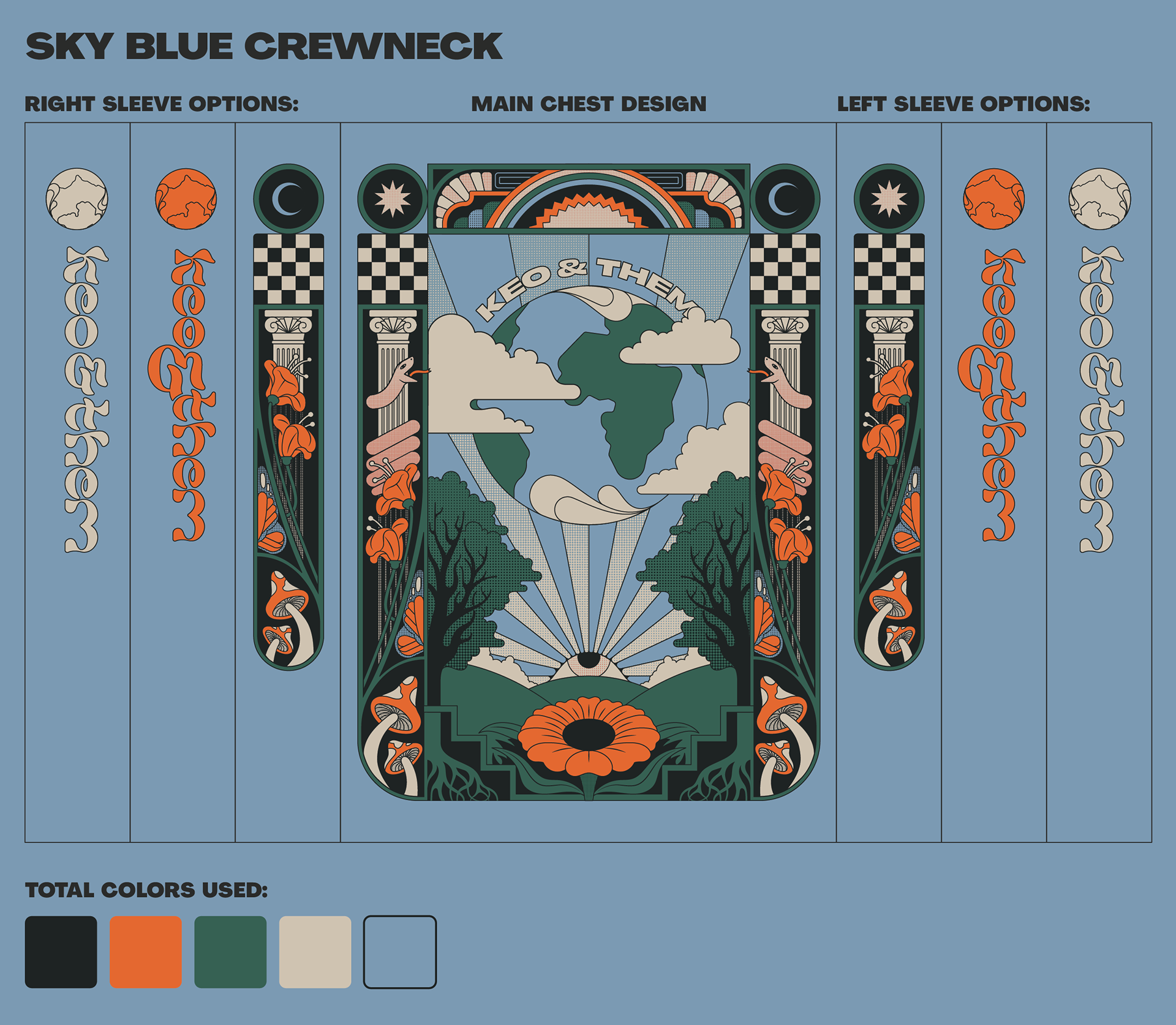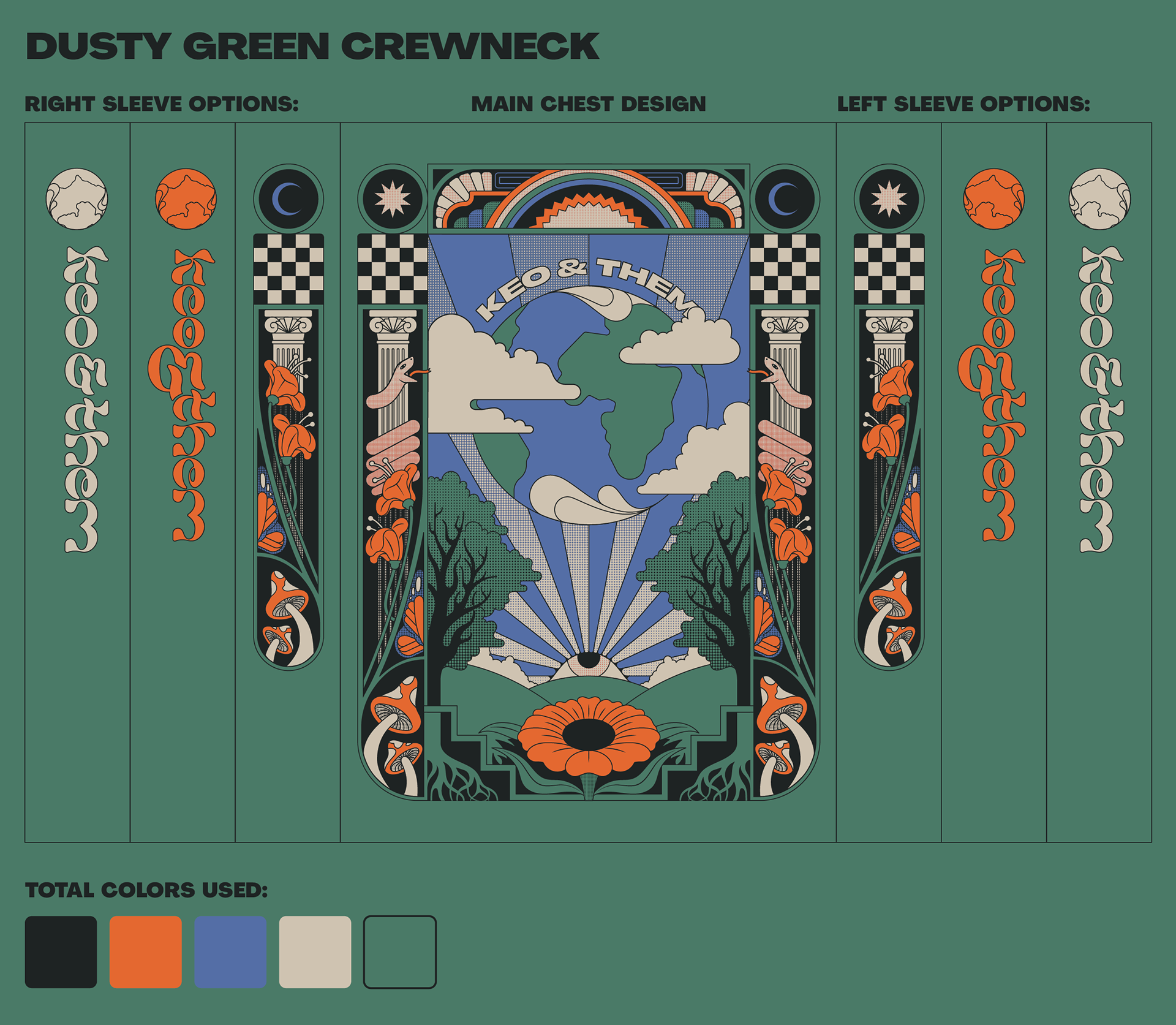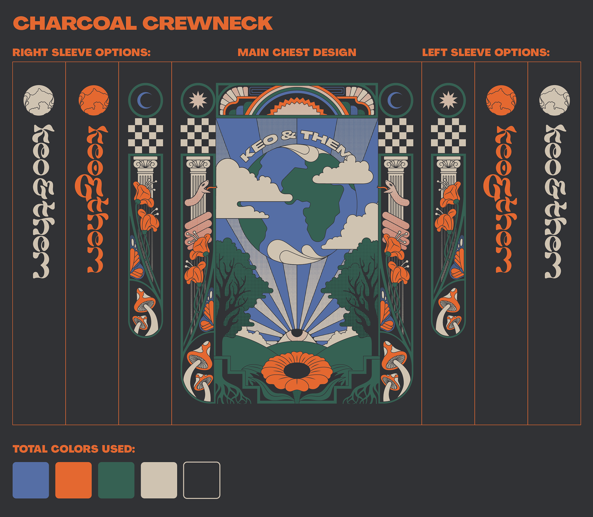 Sweatshirt design with sleeves created as merchandise design for local band, Keo & Them.